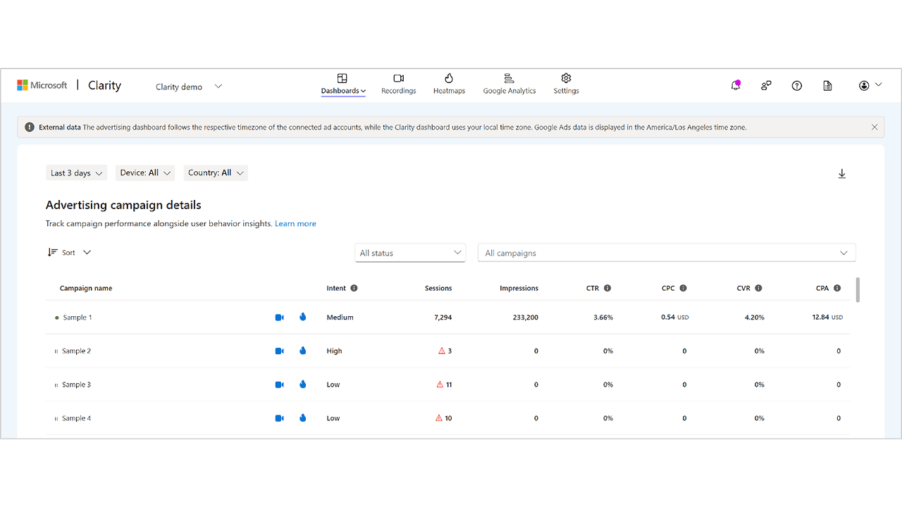 With this integration, advertisers can go beyond basic metrics to understand user behavior after ad clicks. Clarity offers session recordings, heatmaps, and detailed analytics, allowing for the identification of friction points and optimization opportunities. This deeper insight helps refine strategies, reduce drop-offs, and enhance ROAS.