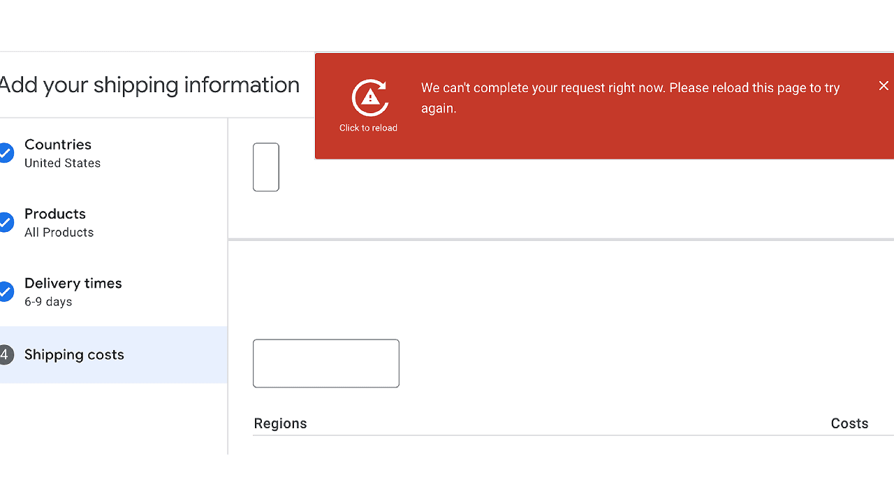 Google Merchant Center Bug Blocks Shipping Rate Setup