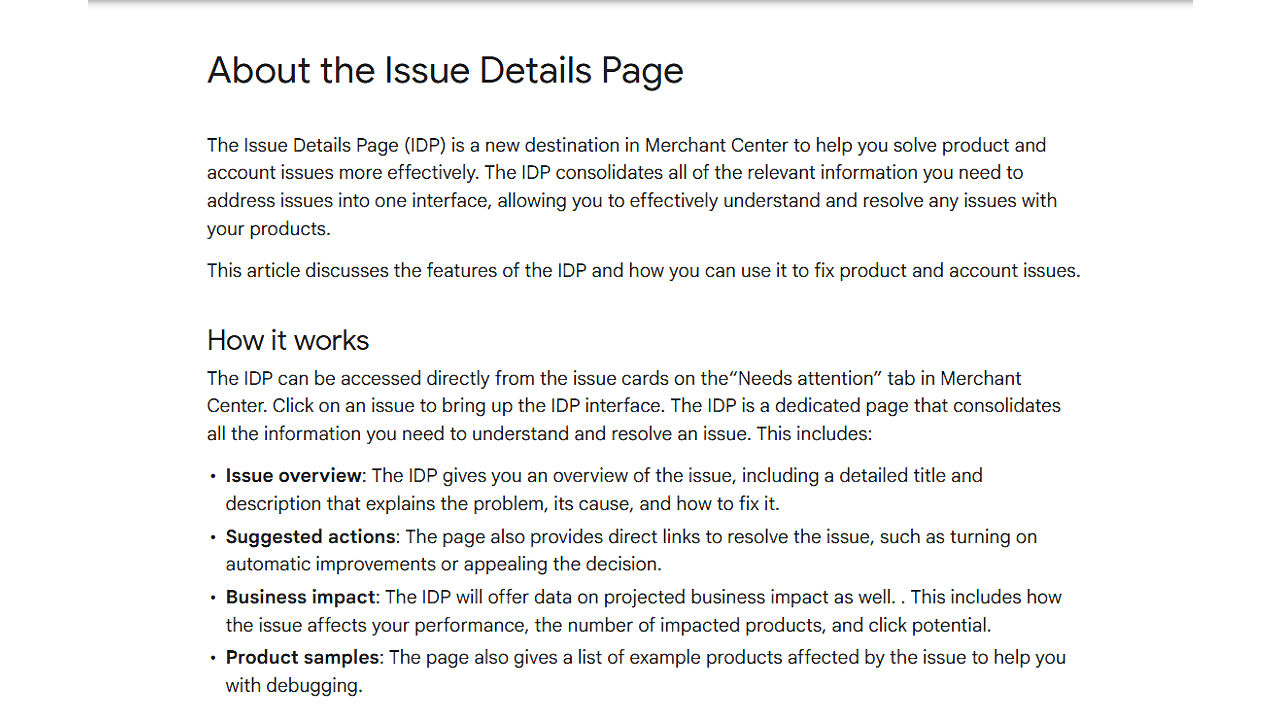 A new Issue Details Page (IDP) is being rolled out in Google Merchant Center, designed to simplify how advertisers diagnose and resolve account or product issues.