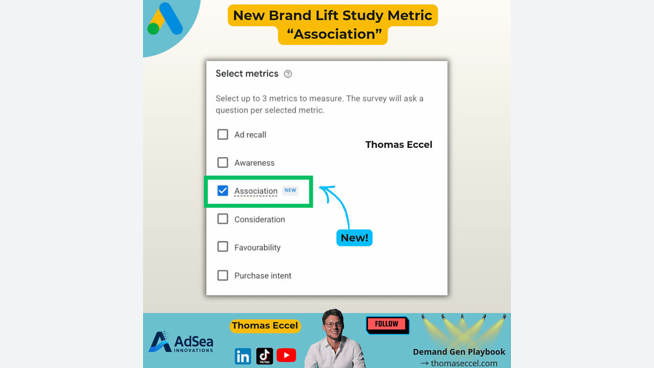 Google Ads has announced a new metric called Association now live inside Brand Lift Studies. This addition allows advertisers to measure brand positioning through survey questions such as, “Which of the following brands do you associate with [your text]?”.